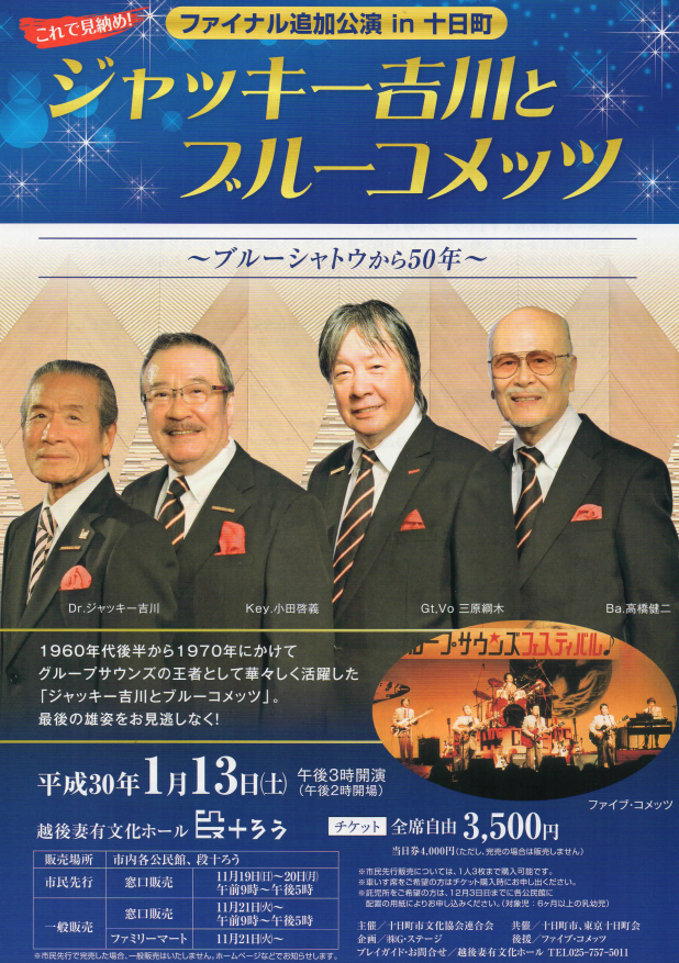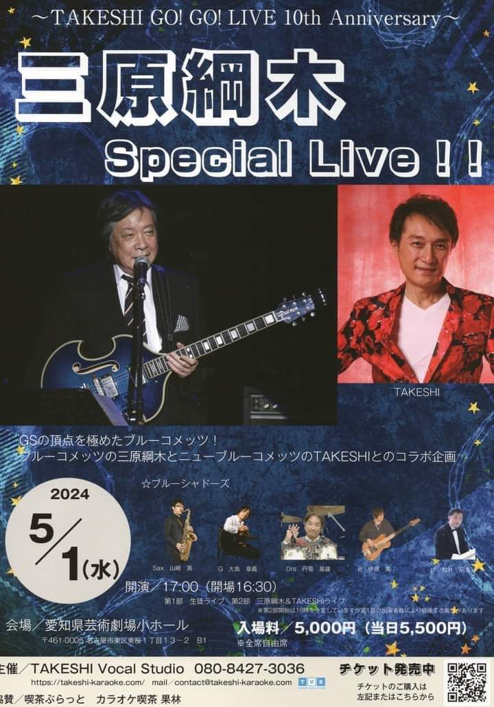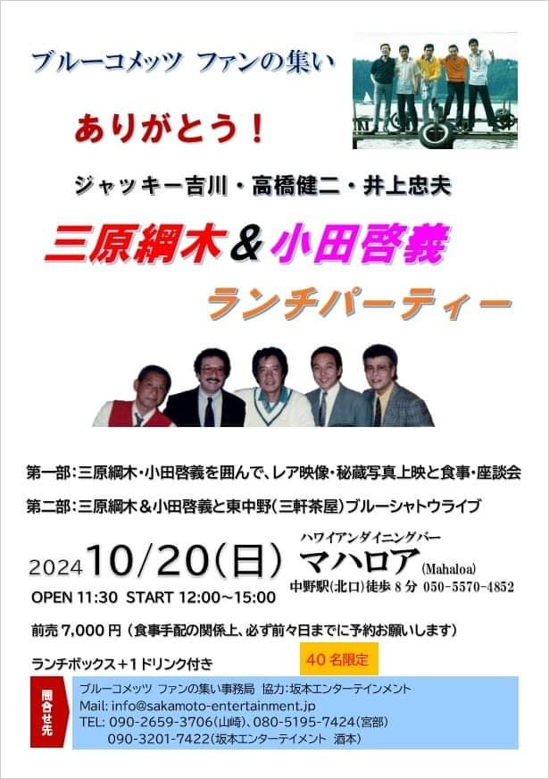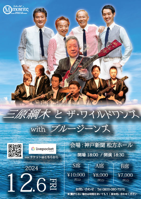 - 12月6日(金) 神戸松方ホールで開催予定「三原綱木とザ・ワイルドワンズwithブルージーンズコンサート」を中止させていただくことになりました。