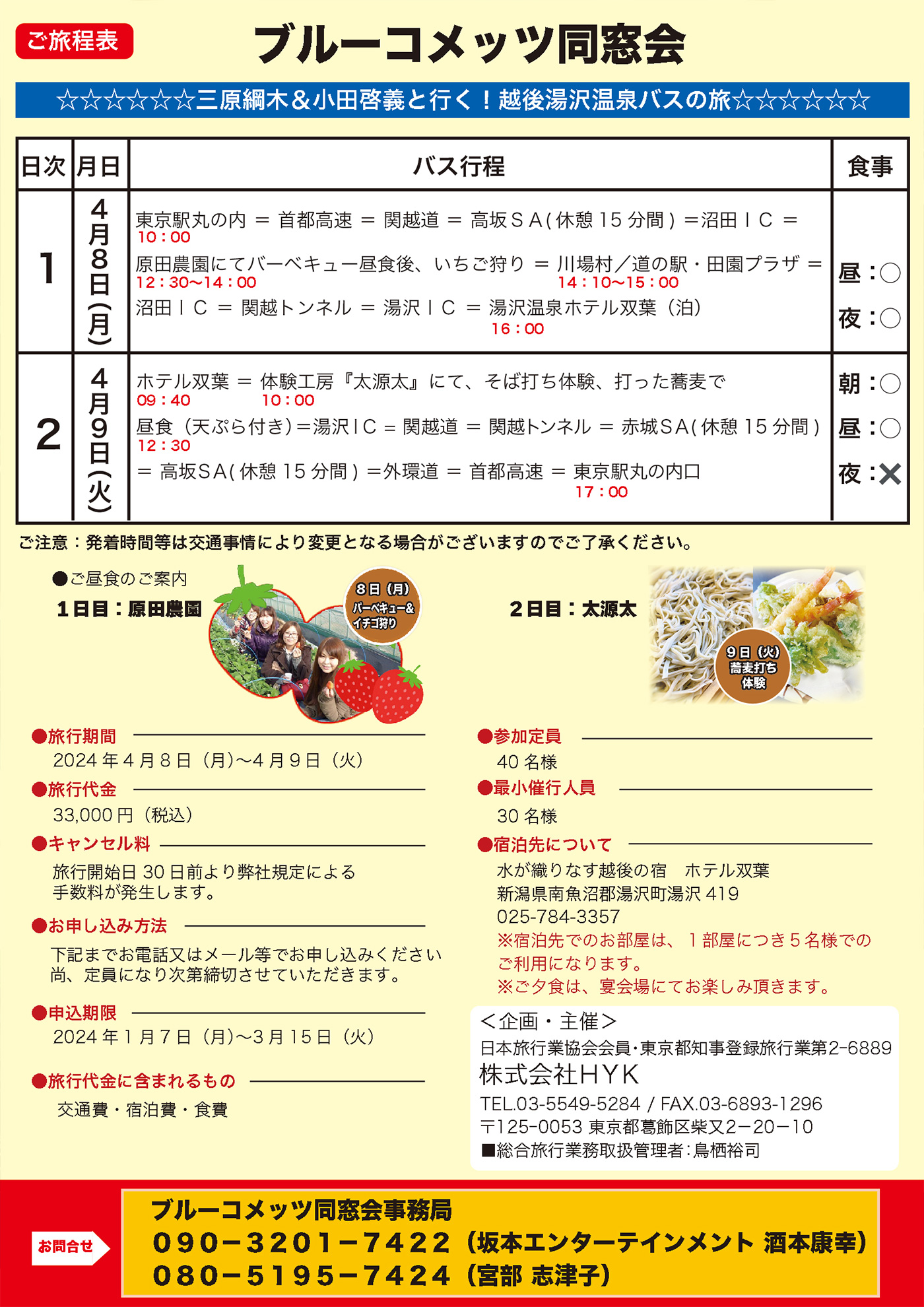三原綱木&小田啓義と行く!越後湯沢温泉バスの旅 - 【旅行日時】